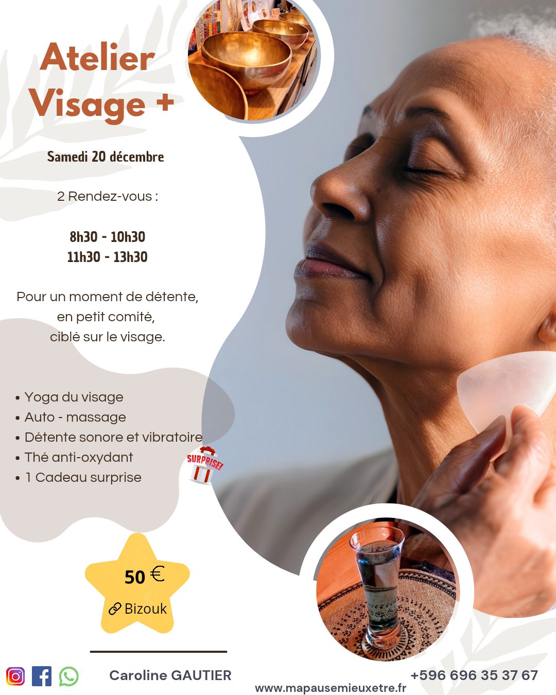 L’atelier Visage+ est une parenthèse de bien-être dédiée à la revitalisation du visage, à la détente profonde et à la reconnexion à soi.