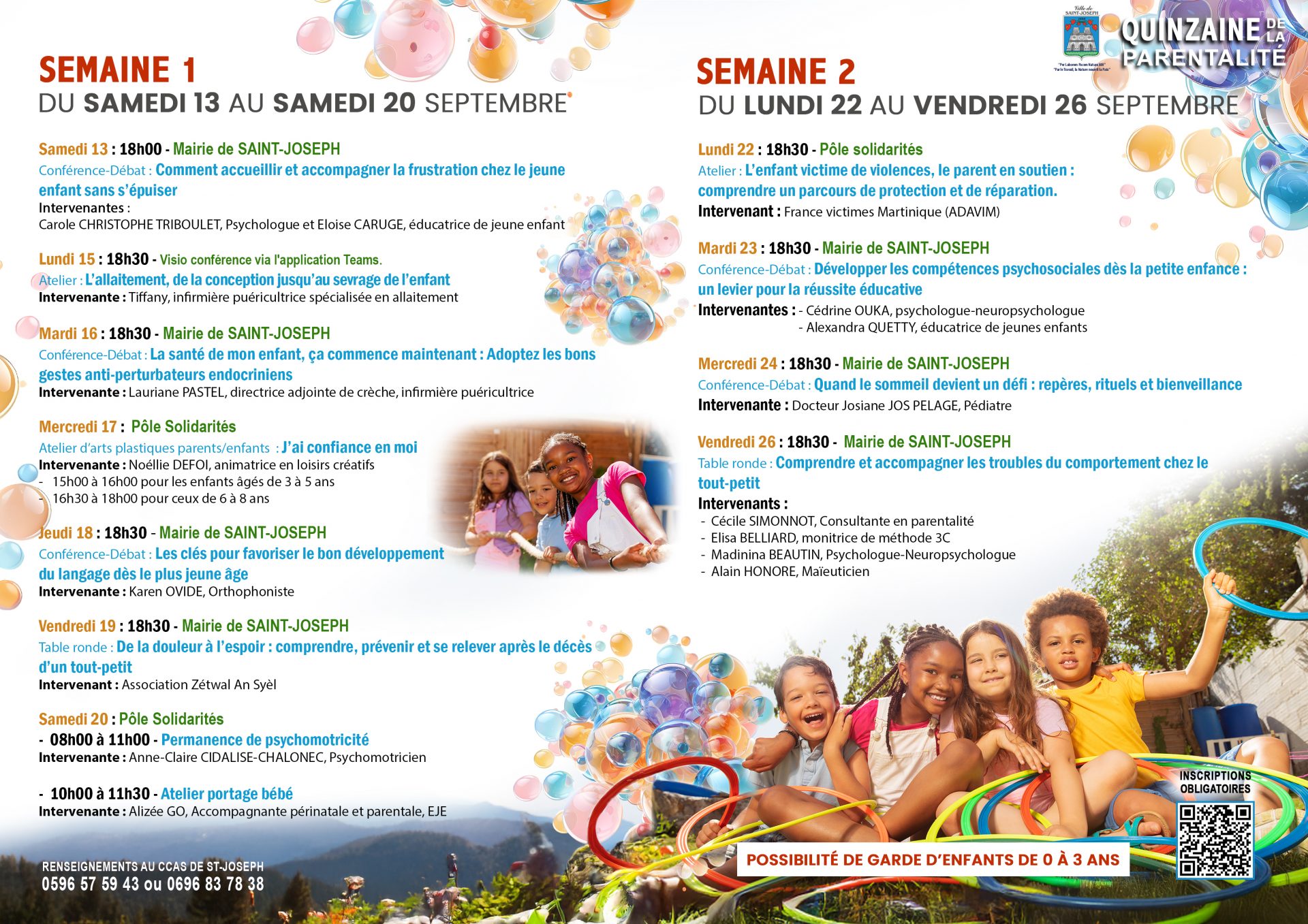 La Ville de Saint-Joseph vous invite à deux semaines d’échanges, de découvertes et de soutien autour de la parentalité de nos enfants (0 à 8 ans).