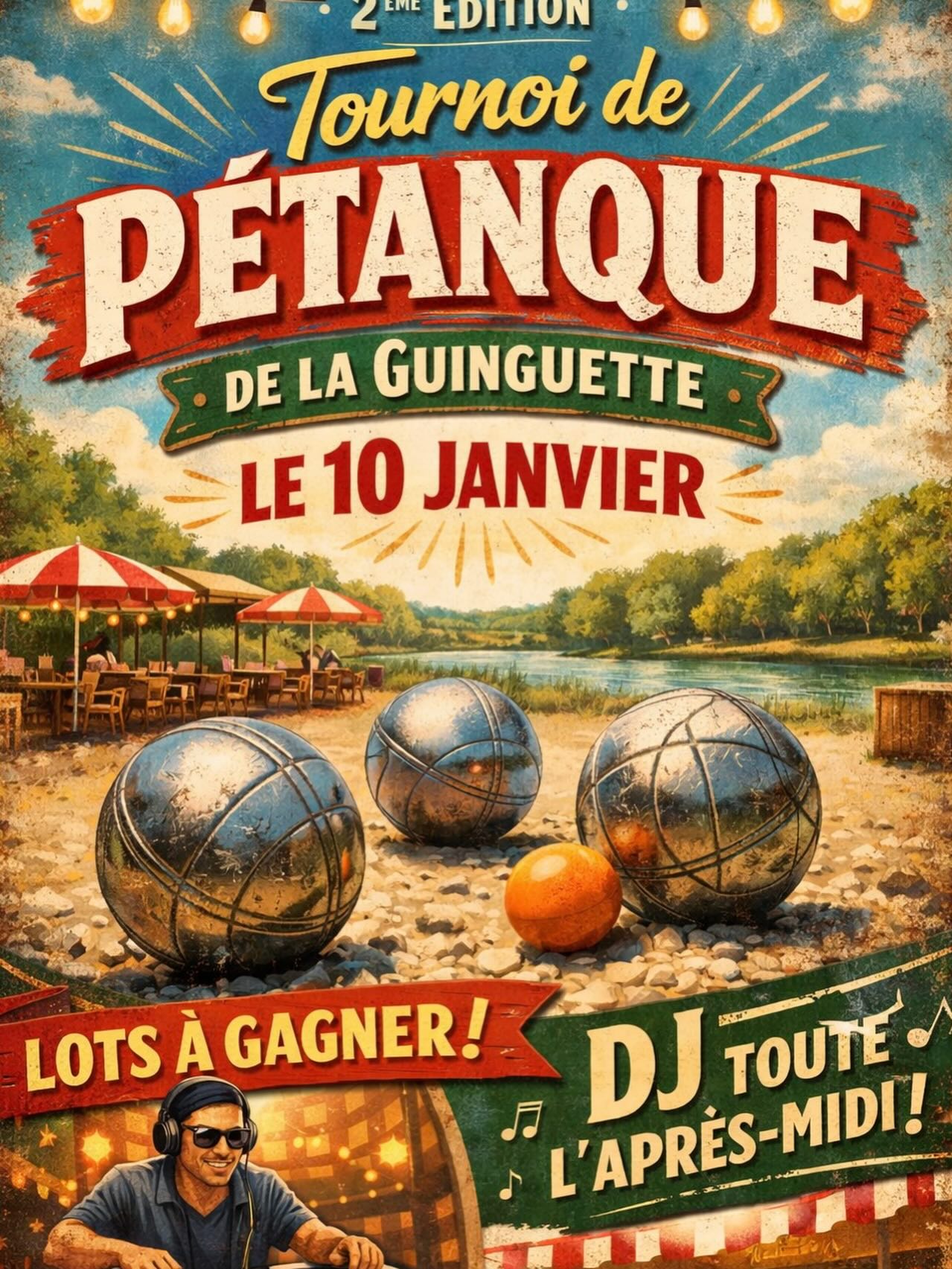 📅 Le 10 janvier, on se retrouve pour un grand tournoi de pétanque ouvert à tous, dans une ambiance conviviale, festive et pleine de bonne humeur ! Que tu sois tireur d’élite, pointeur confirmé ou juste là pour le fun, tout le monde est le bienvenu 😄
