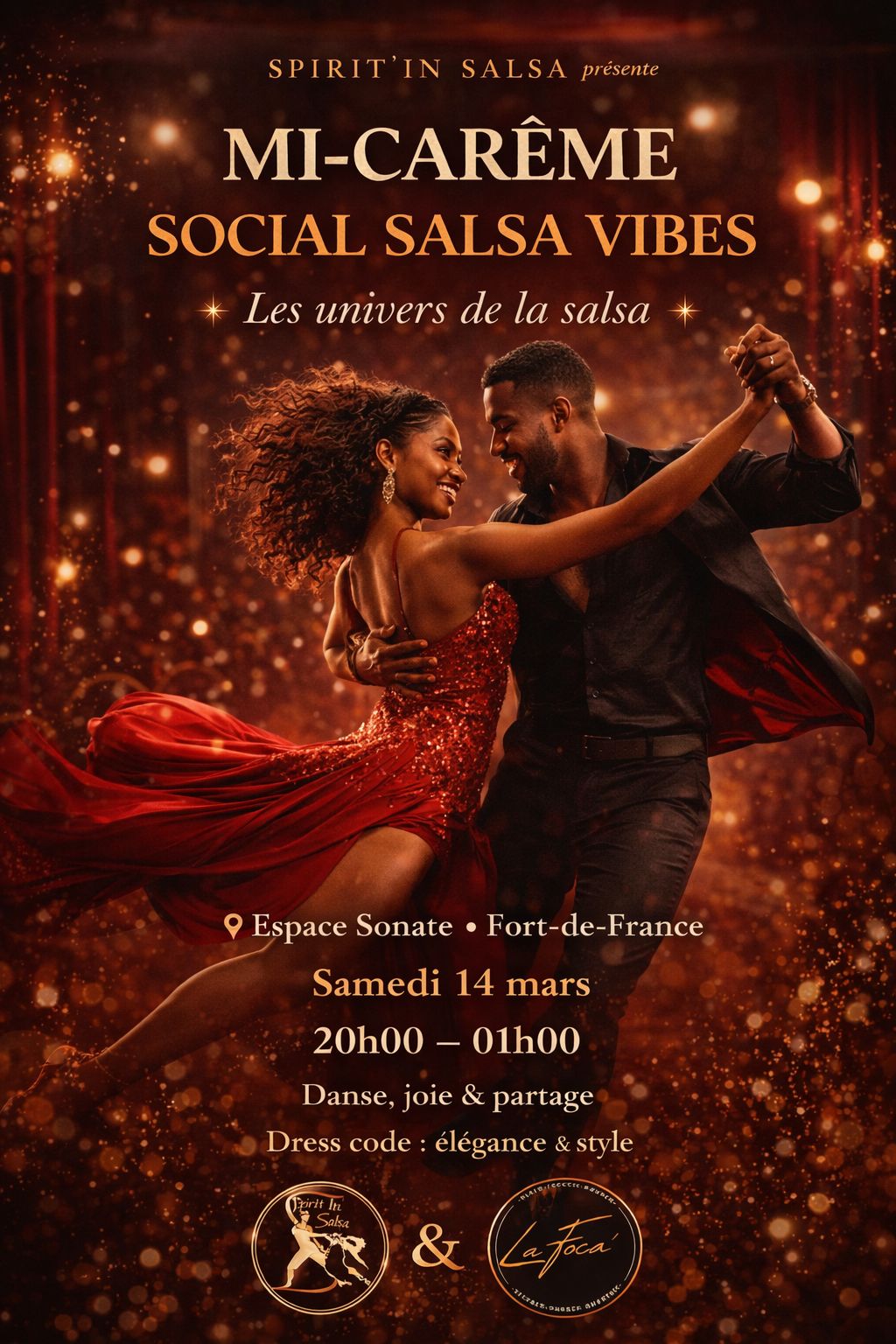Plonge dans une soirée où la danse, la joie et le partage se mêlent à l’esprit festif de la Mi‑Carême. Une pause chaleureuse au cœur de la saison, pour célébrer ensemble au rythme des sons latinos. Espace Sonate – Fort‑de‑France