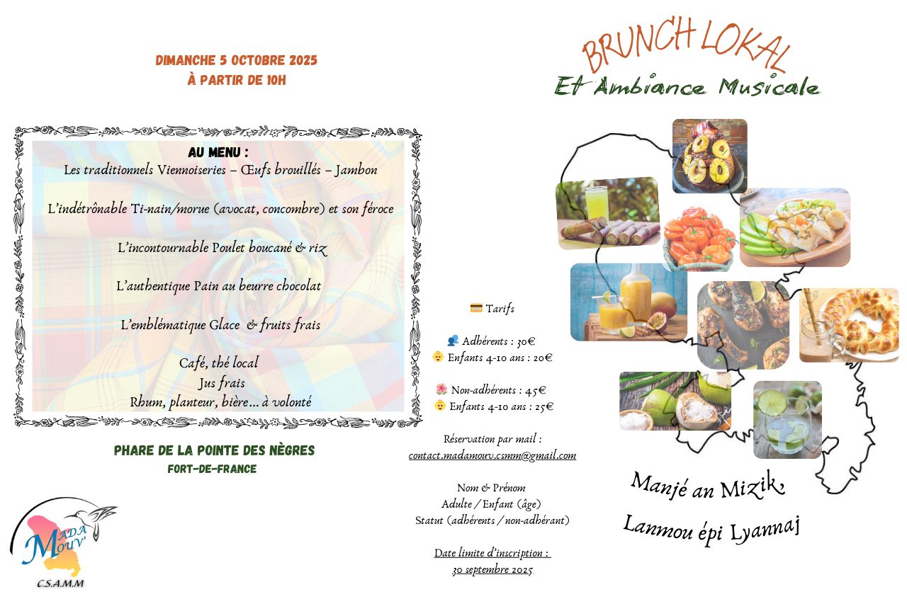 Venez partager un brunch Lokal avec Mada Mouv’, section du Club Sportif et Artistique Militaire de la Martinique. Promouvoir notre île, nos racines, nos cultures et traditions sont l’essence même de nos activités.