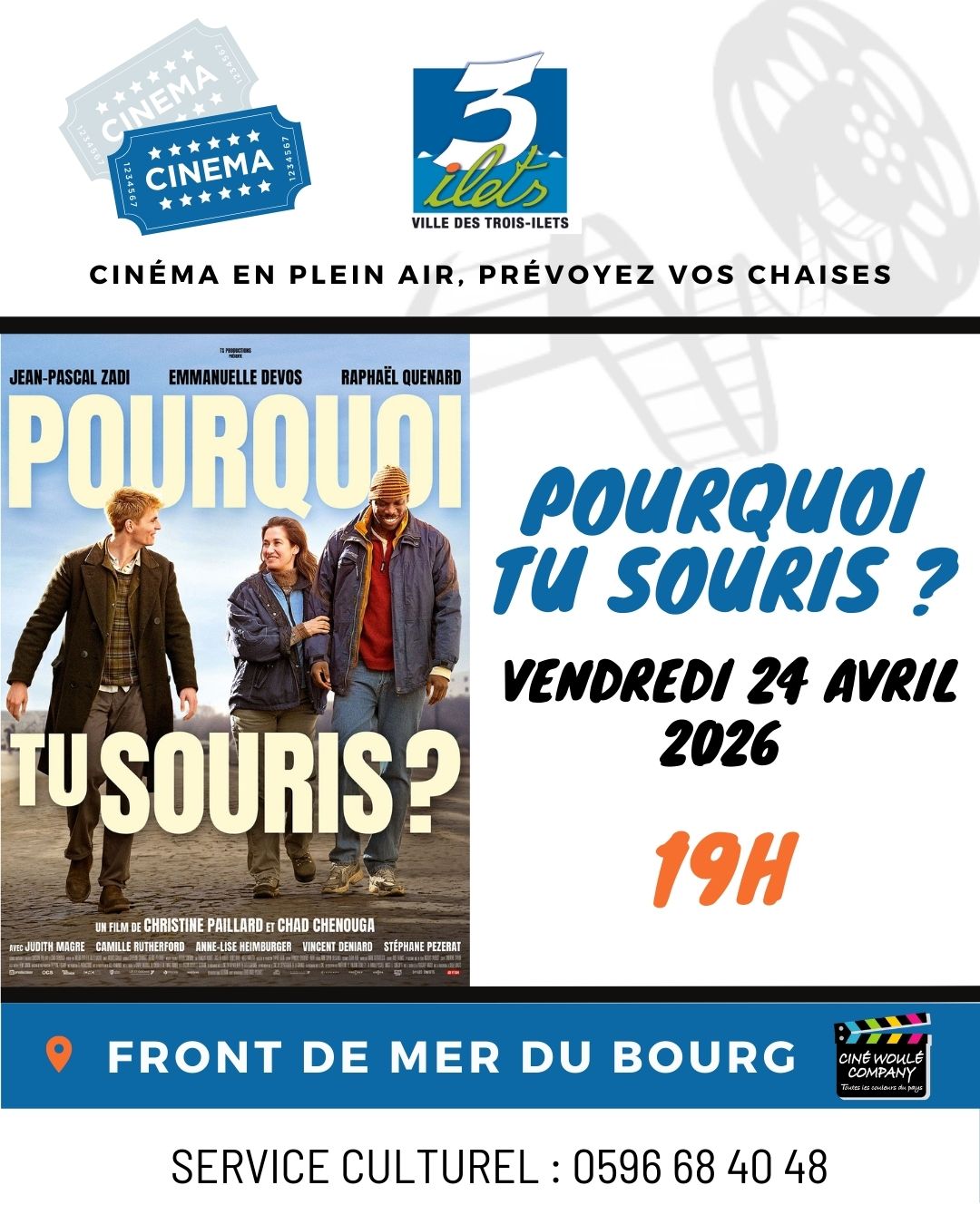 Venez nombreux profiter d’une belle soirée cinéma en plein air autour du film Pourquoi tu souris ? 🎞️