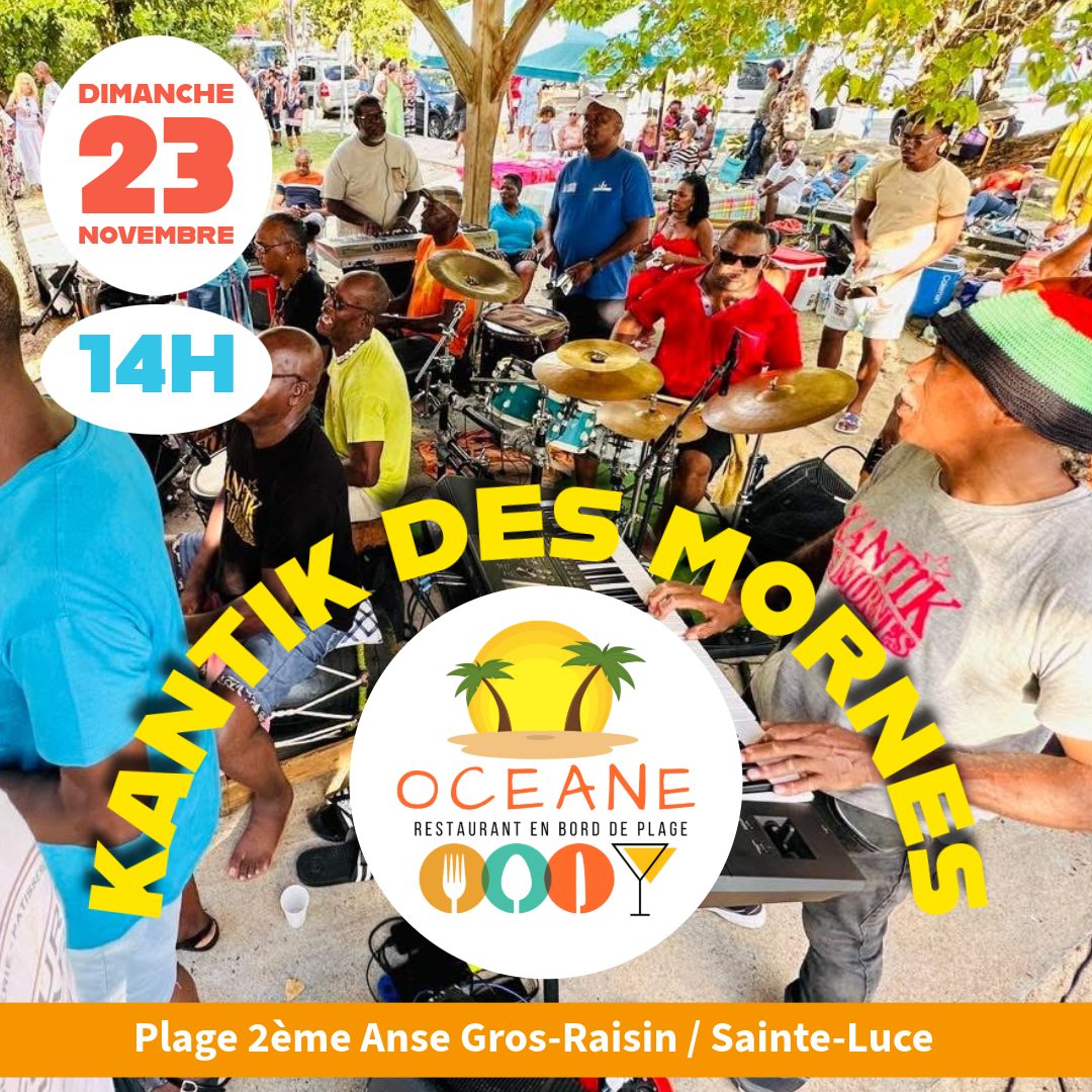 🎉🎉🎉Nou toujou la…Nou ké toujou la… » 🎊🎊🎊🎊🎊Après le succès dimanche dernier, Océane Resto.. reprend les mêmes…Zot Ja Sav…🎊🎊’KANTIK des MORNES »🎊🪇🥁🥁🪇🪘🎷….rdv pour l’acte 2 le dimanche 23 Novembre 2025 à partir de 14h…kouté pou tann …tann pou kouté …. « ⛱️⛱️🏝️🏝️🏖️ Plage de 2ème Anse Gros Raisins – 97228 Ste Luce⛱️⛱️ »…. »Lè Zanmi …lè Zanmi..Nwèl ka rivè ..vini filé kantik ZOT…épi Océane bagay la Kay Cho…
