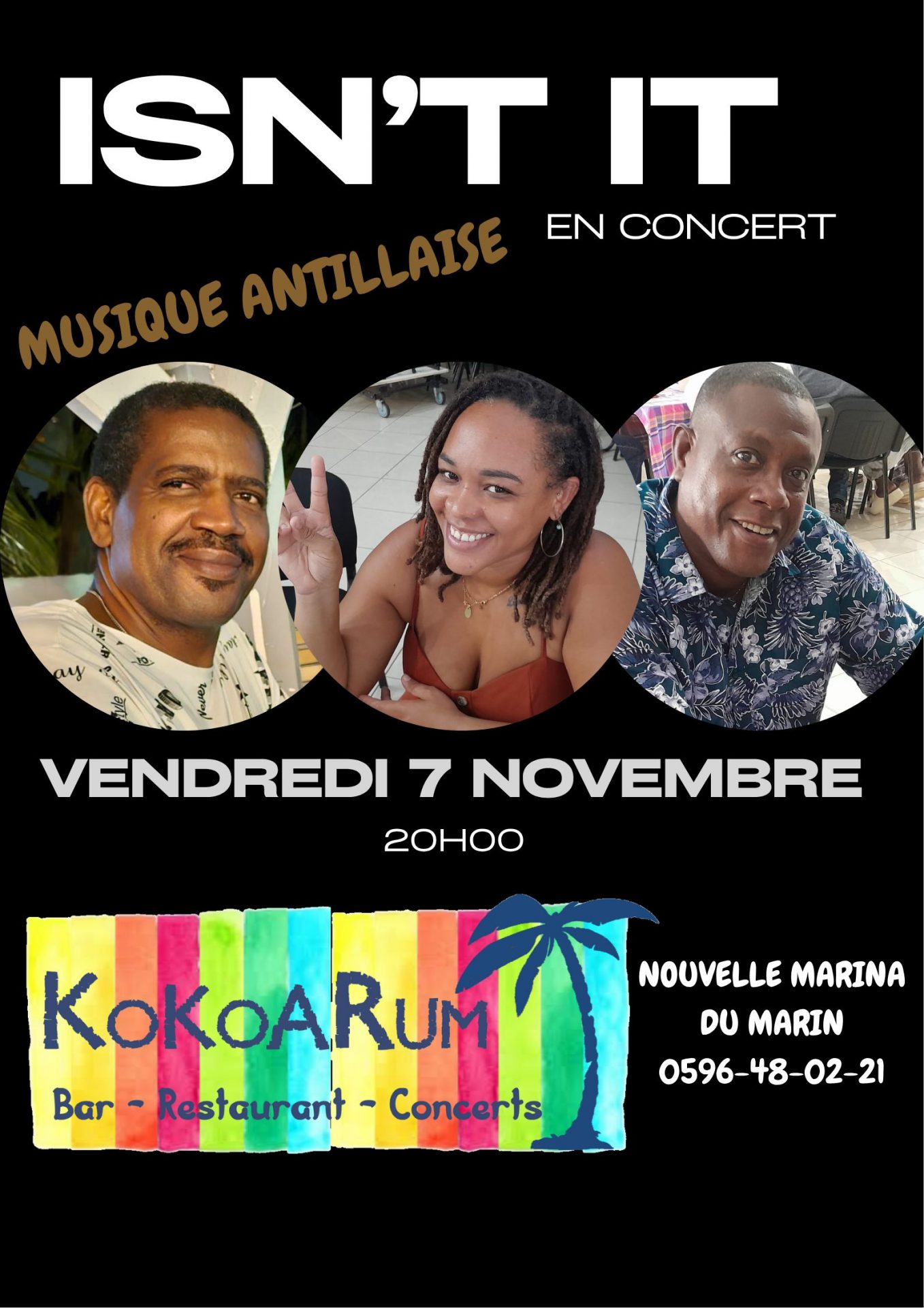 Lors du premier passage de ce trio au Kokoarum ce vendredi les danseurs et amoureux de bonne musique.  Les standards de la musique antillaise vont être mis à l’honneur : zouk, kompas… Amis danseurs, c’est pour vous, un très bon moment en perspective.