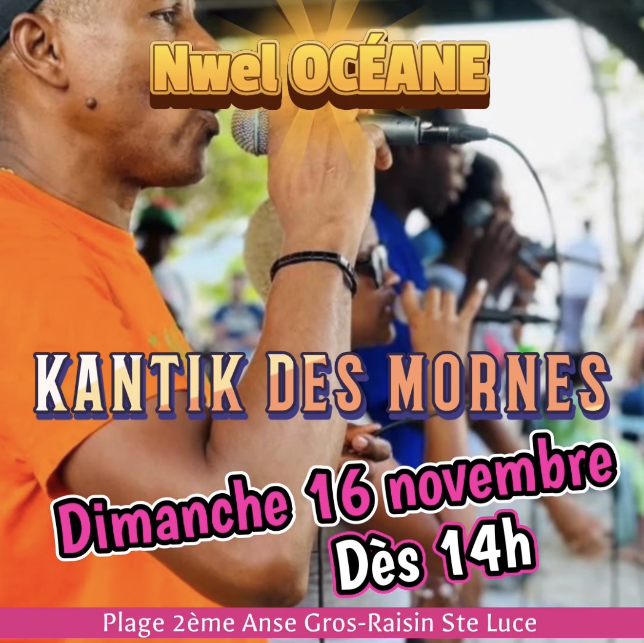 🎉🎉Nous sommes toujours là.. On est toujours là… 🎊🎊🎊🎊🎊Après le succès de l’édition 2024.. Resto de l’océan.. Reprends la même… Seigneur Ja Sav… 🎊🎊‘KANTIK des MATINS »🎊 🪇🪘🥁🥁 N…. Rendez-vous pour l’acte 1… Le dimanche 16 novembre bre 2025 à partir de 14h .. Acte 2 du dimanche 23 novembre 2025… Attends l’attente… Attendez d’écouter…  » ⛱️ ⛱️ 🏝️ 🏝️ B️Plage de 2ème Anse Gros Raisins – 97228 Ste Luce ⛱️ ⛱️« …. » Quand des amis… Moment entre amis… Noël peut se reproduire… venez chanter les hymnes de DIEU… Et l’océan est chaud… »