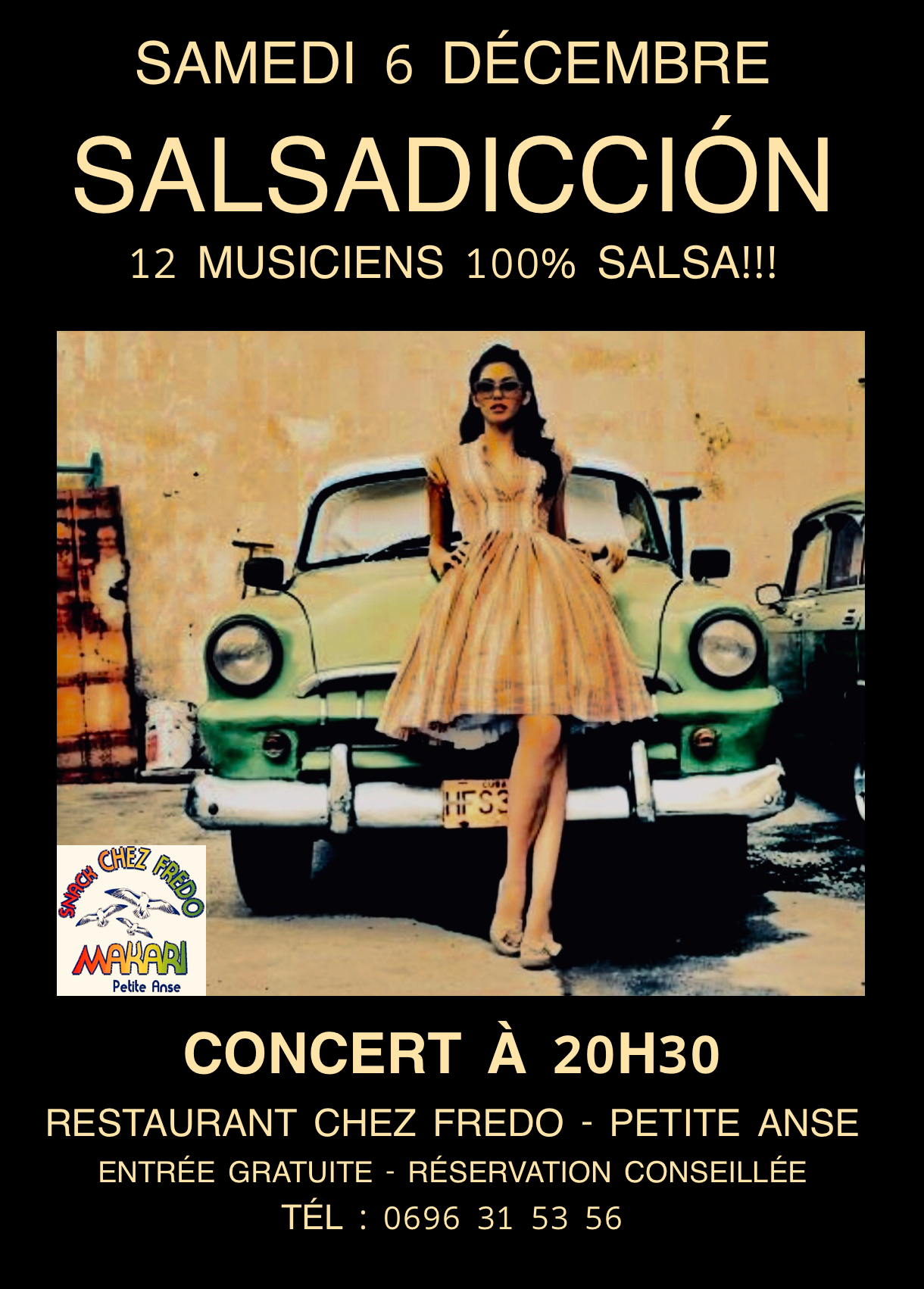 SALSADICCIÓN revient en concert chez Frédo à Petite Anse : 12 musiciens sur scène et une ambiance conviviale chez Frédo qui laisse toujours la part belle à la musique live!