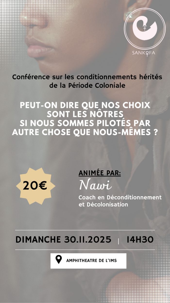 Le dimanche 30 novembre 2025 à 14h30, dans l’amphithéâtre de l’IMS, viens découvrir un espace pour désapprendre, réapprendre et réincarner (venir incarner quelque chose de nouveau).