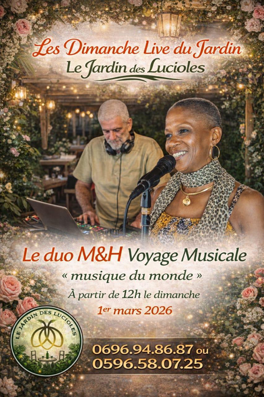 Ce dimanche, laissez-vous emporter par un véritable voyage musical au Restaurant Le Jardin des Lucioles à Tartane, Martinique 🌴