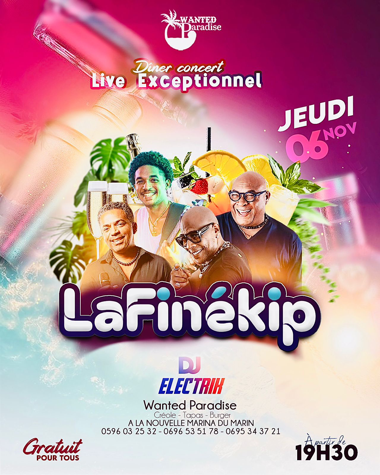 🔥 Jeudi 6 novembre, rendez-vous au Wanted Paradise pour un dîner-concert exceptionnel ! 🔥