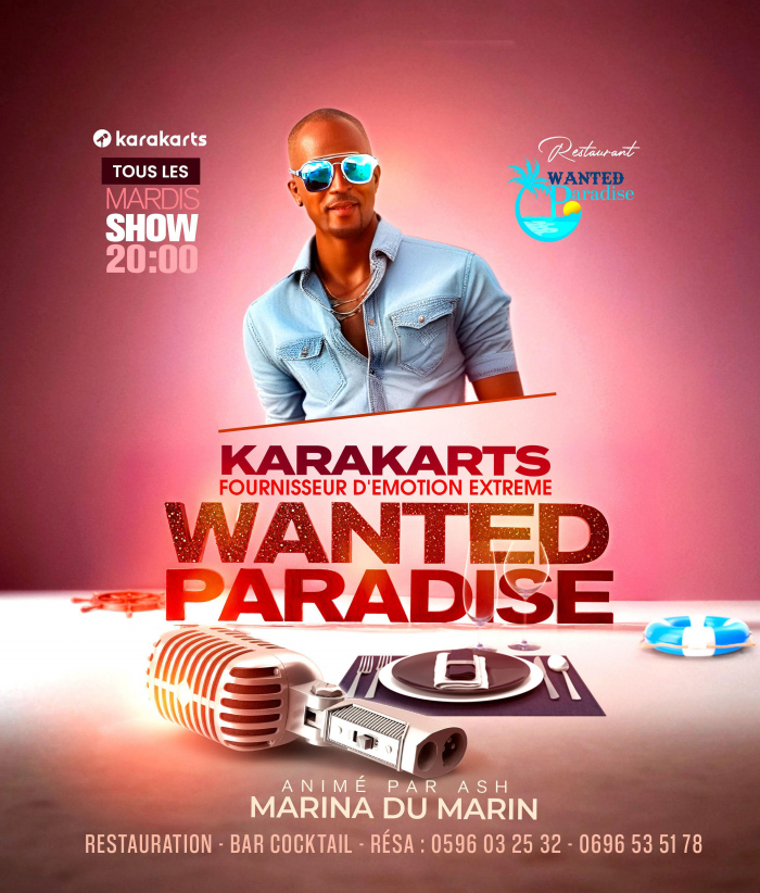 Rendez-vous tous les mardis dès 20h à Wanted Paradise – Marina du Marin pour un karaoké exceptionnel animé par Ash, le maître de l’ambiance et des bonnes vibrations !
