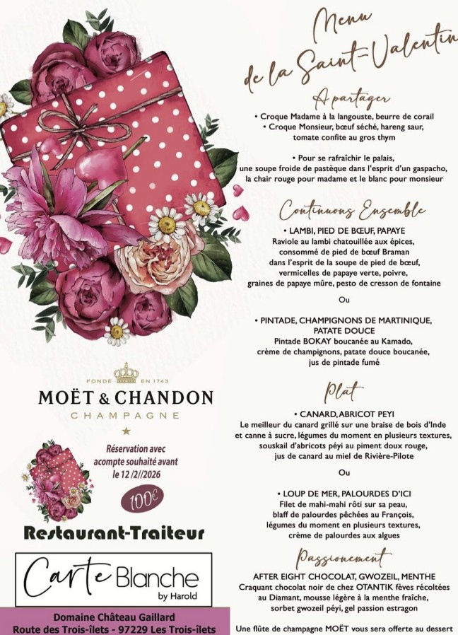 Menu Saint Valentin Carte Blanche (Résa gratuite en ligne)