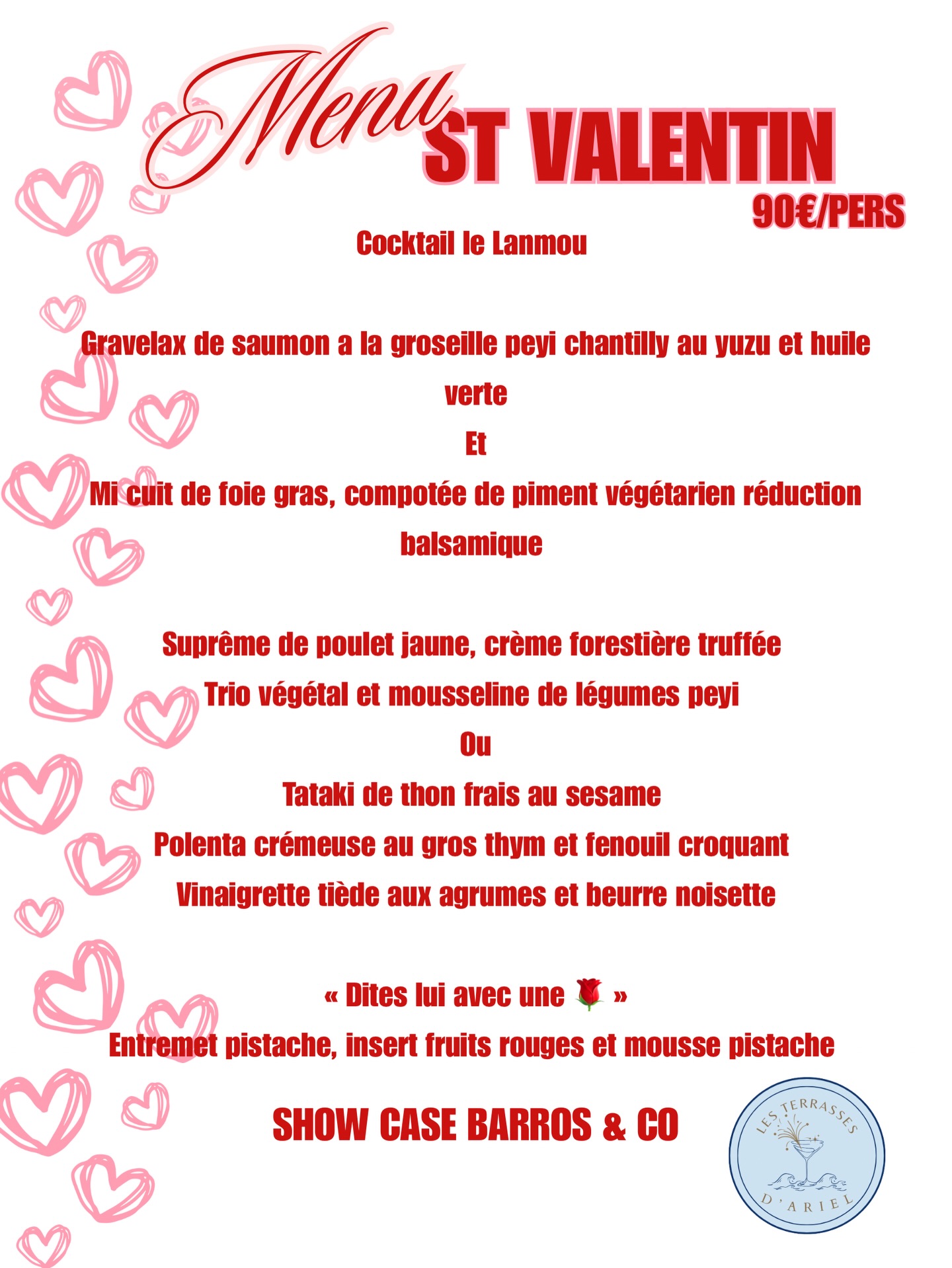 Menu St Valentin (Résa gratuite en ligne)