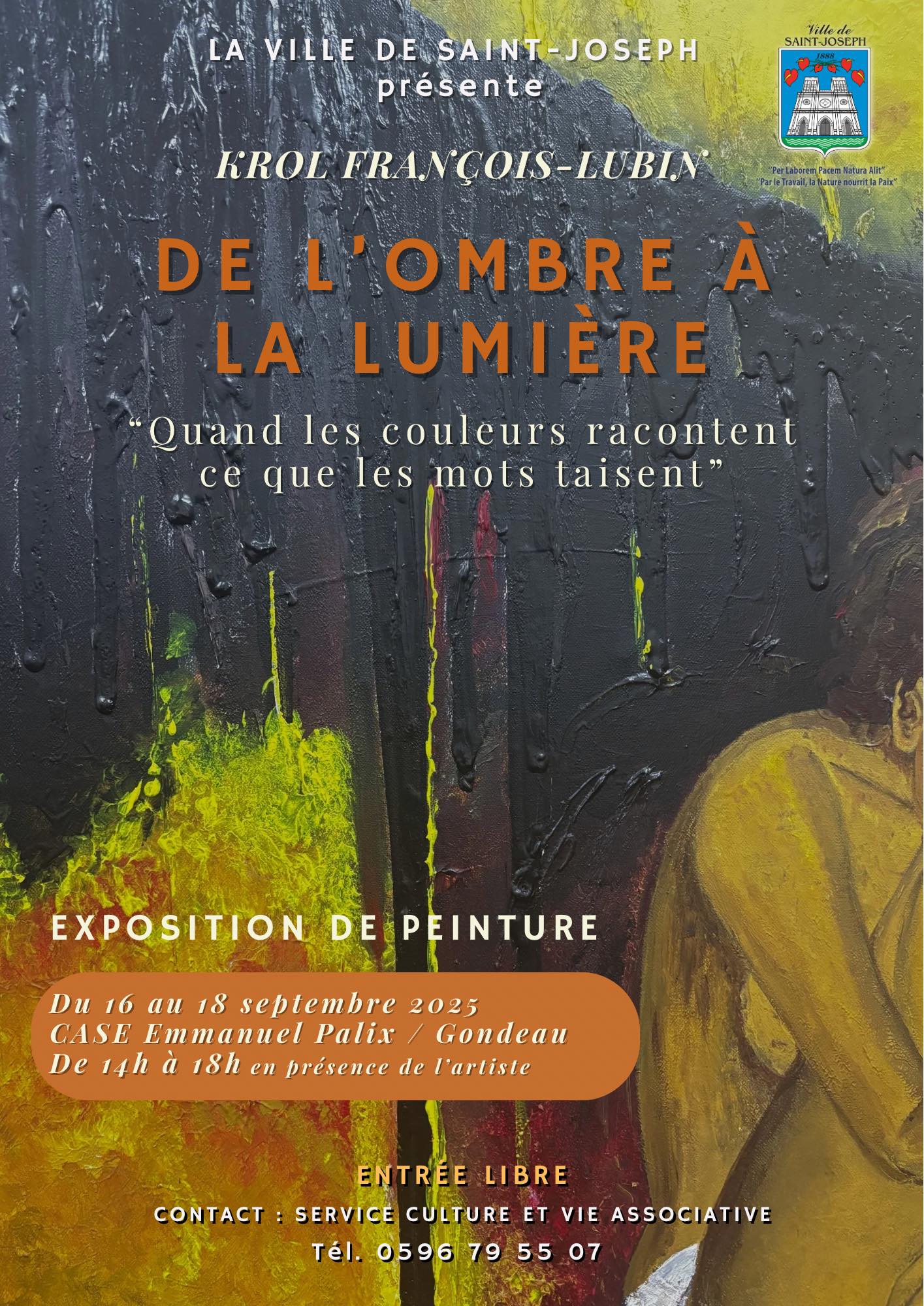 La Ville de Saint-Joseph vous invite à découvrir l’univers de Krol François-Lubin à travers son exposition « De l’ombre à la lumière » 🖌.