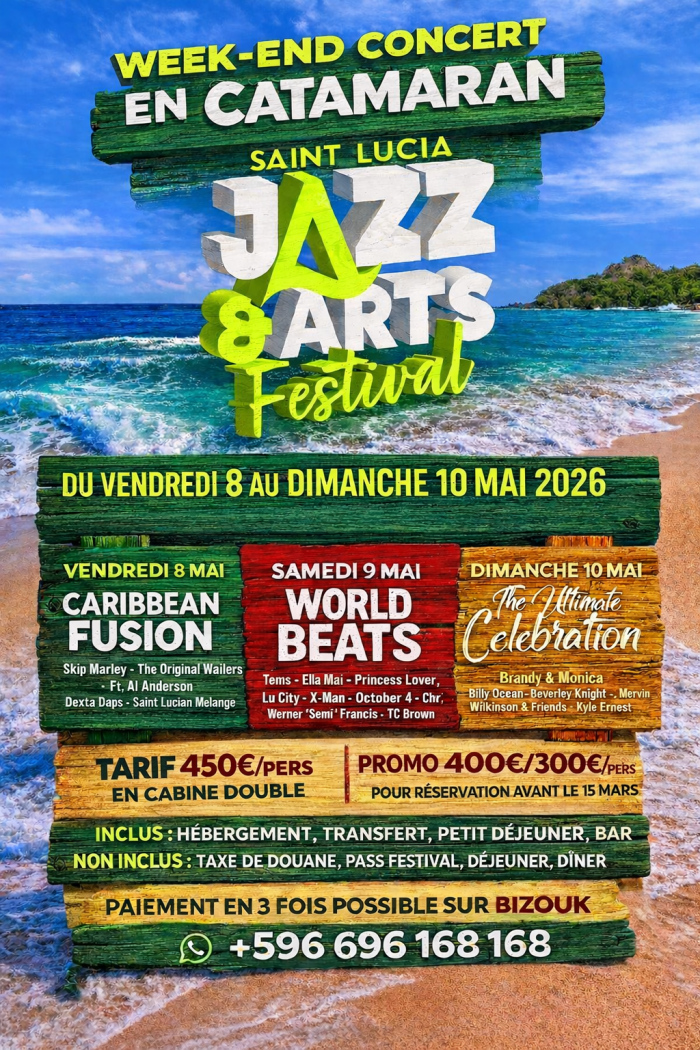 Vivez 3 jours exceptionnels entre mer turquoise, ambiance premium et concerts live au mythique Saint Lucia Jazz & Arts Festival.