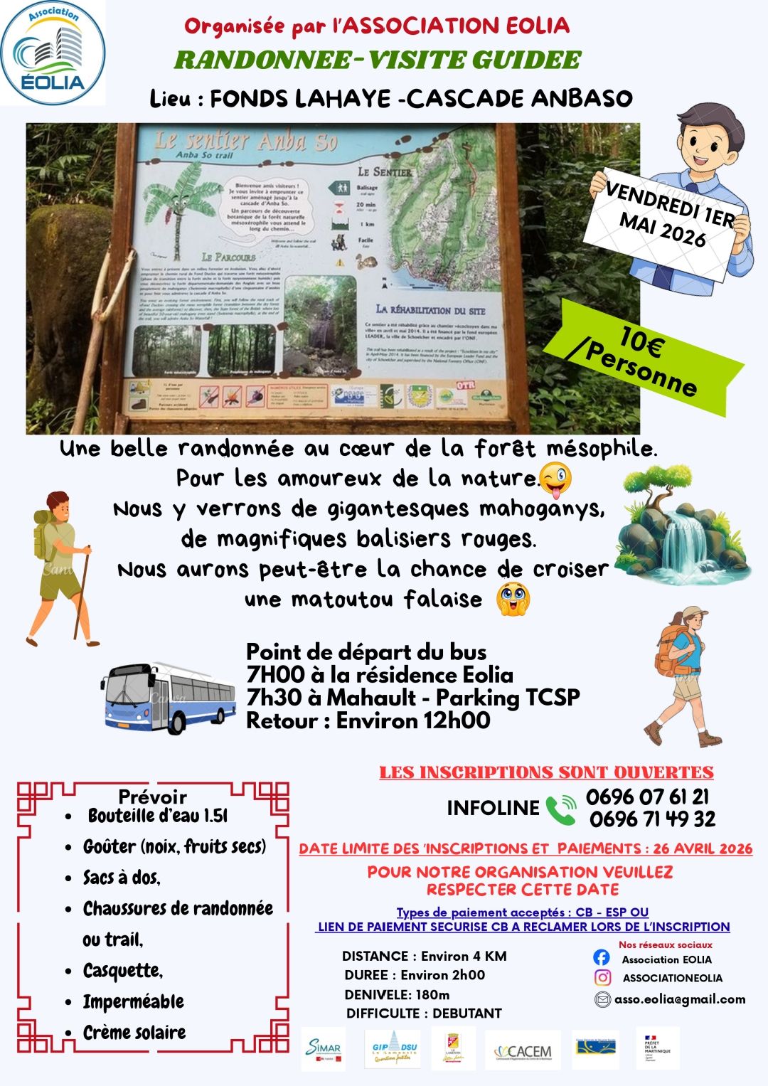 Le vendredi 1er Mai 2026, nous organisons une rando visite guidée à la cascade ANBA SO à Fonds Layaye à Schoelcher.