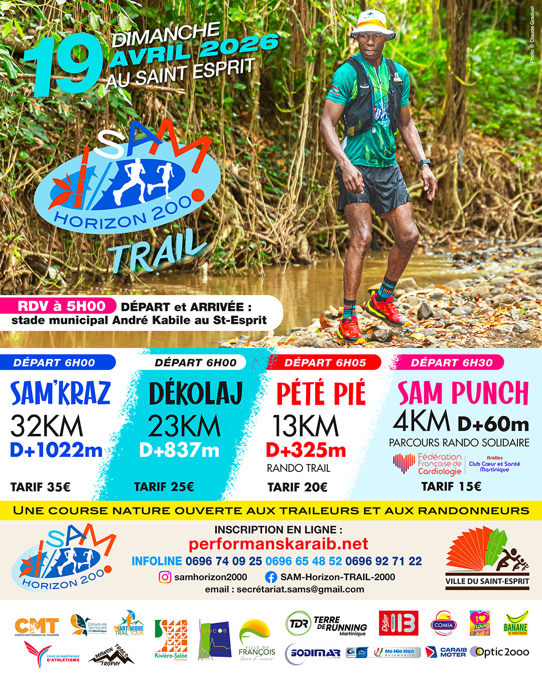 Dans le cadre du championnat du MTT, en partenariat avec le comité martiniquais du tourisme et la ligue d’athlétisme de Martinique , le club sam horizon 2000 vous propose la Sam horizon trail , sa course nature qui aura lieu au st-esprit le 19 avril 2026.