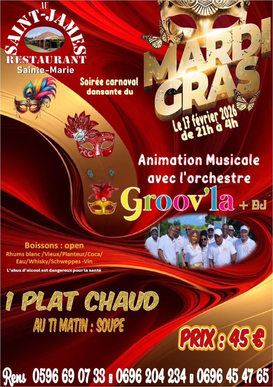 Réservez votre soirée Mardi Gras Carnaval au restaurant Le Saint James