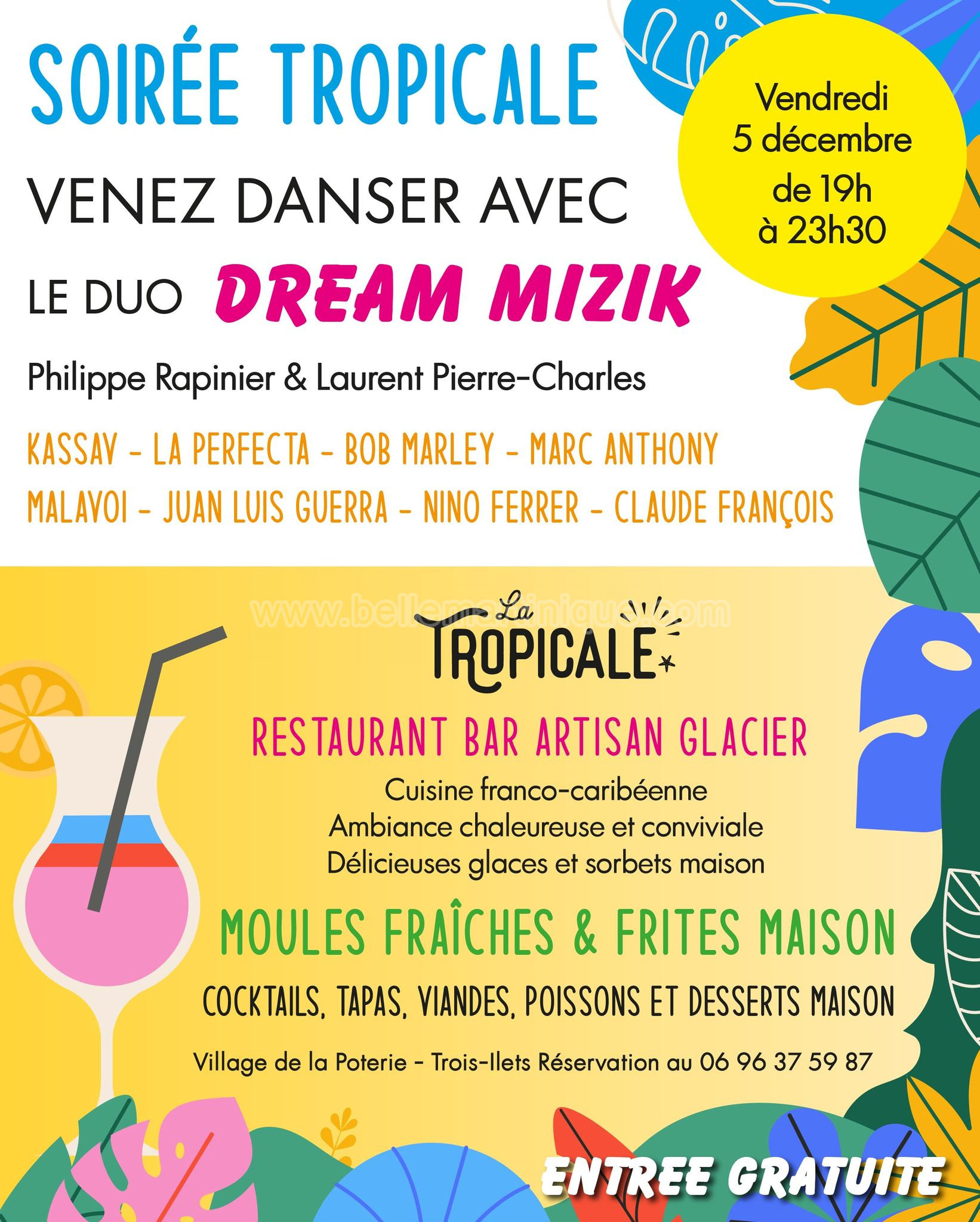 🎉🌴 Ce vendredi 5 décembre dès 19h, venez vous ambiancer au restaurant La Tropicale avec le duo Dream Mizik pour une ambiance 100% tropicale et chaleureuse ! 🌴🎉