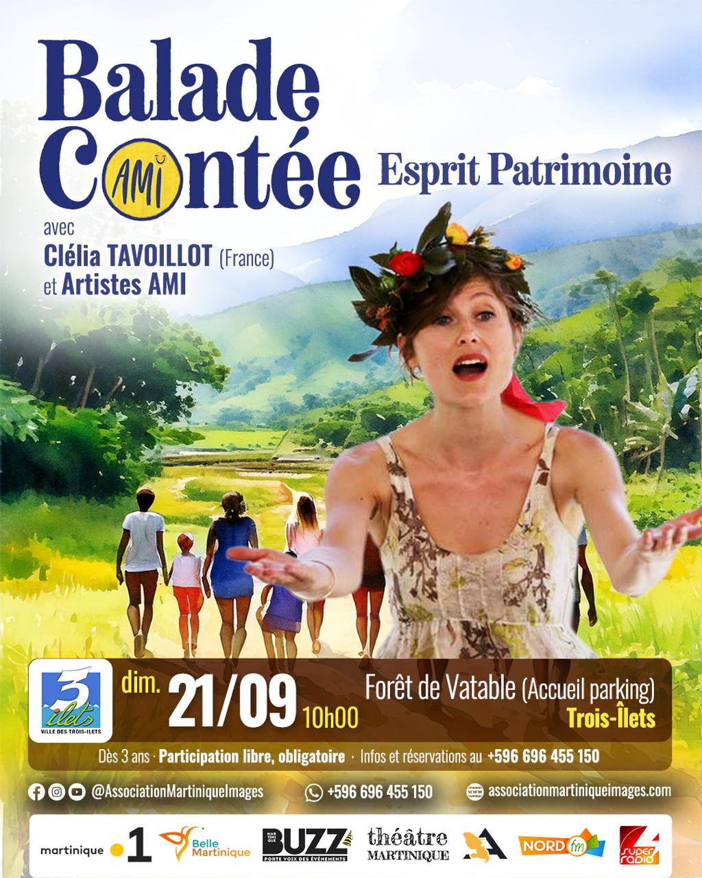 Clélia Tavoillot rejoint l’association Martinique Images (AMI) le temps d’une balade contée, mettant en valeur notre patrimoine, dans la forêt de Vatable, dimanche 21/09 à 10h.