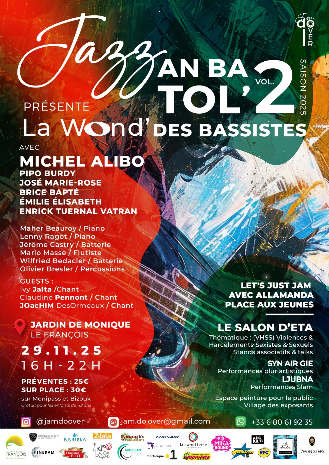 Dernier de l’édition 2025, le JAZZ AN BA TOL’ propose un finish de rêve pour terminer l’année en beauté, avec « LA WOND DES BASSISTES », emmenée par Michel ALIBO,