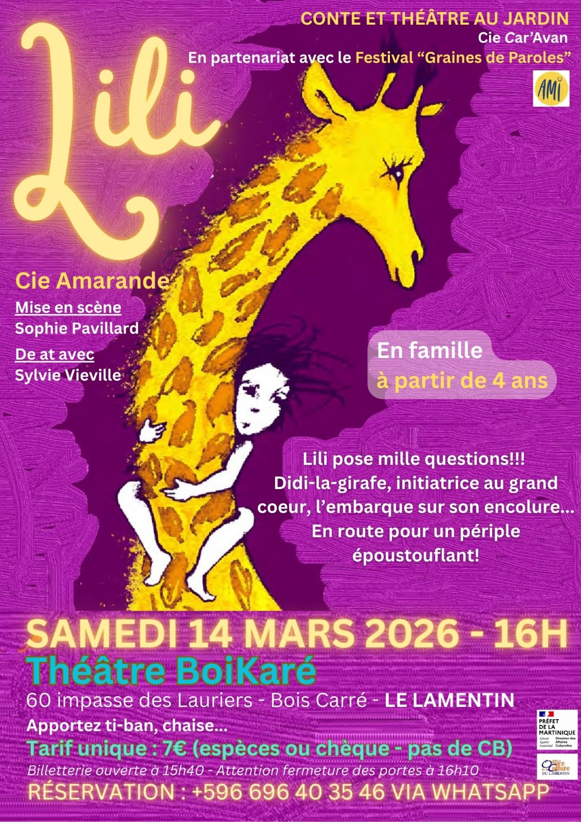 Le saviez-vous ? Le 8e festival GRAINES DE PAROLES 🌱🌱🌱 se déroule du 14 au 29 mars 2026 sur l’ensemble du territoire martiniquais, avec ses 🎭 Spectacles Jeune Public (2 à 5 ans), organisé par l’association Martinique Images (AMI).