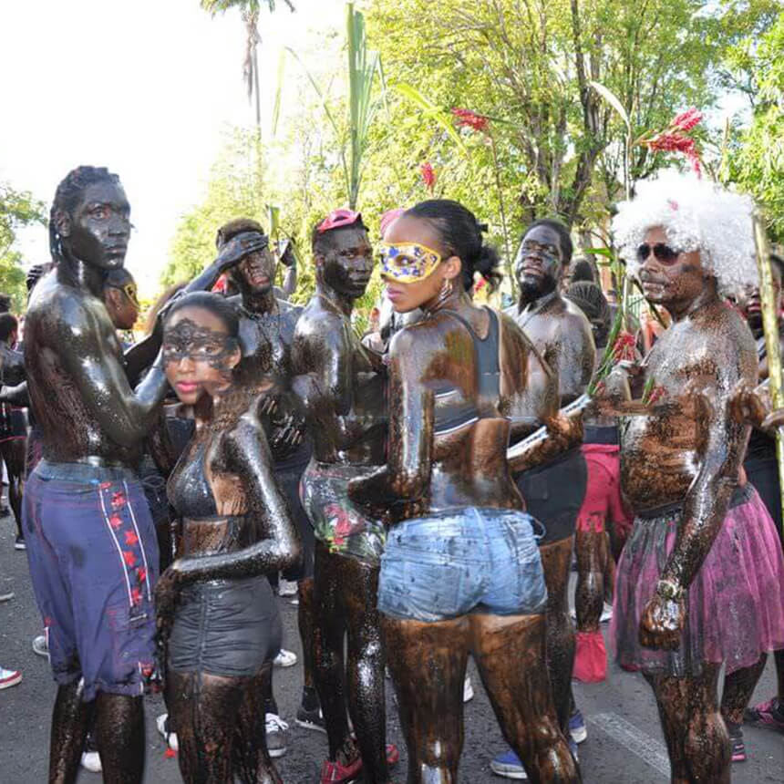 Recouverts d’argile, ces hommes et ces femmes avancent lentement, souvent en silence. Leurs corps figés évoquent des statues vivantes. Cette performance visuelle impressionne par sa sobriété et son intensité. Elle rappelle le lien profond entre le carnaval, la terre et les racines de l’île. Leur présence apporte une dimension presque méditative au tumulte carnavalesque.