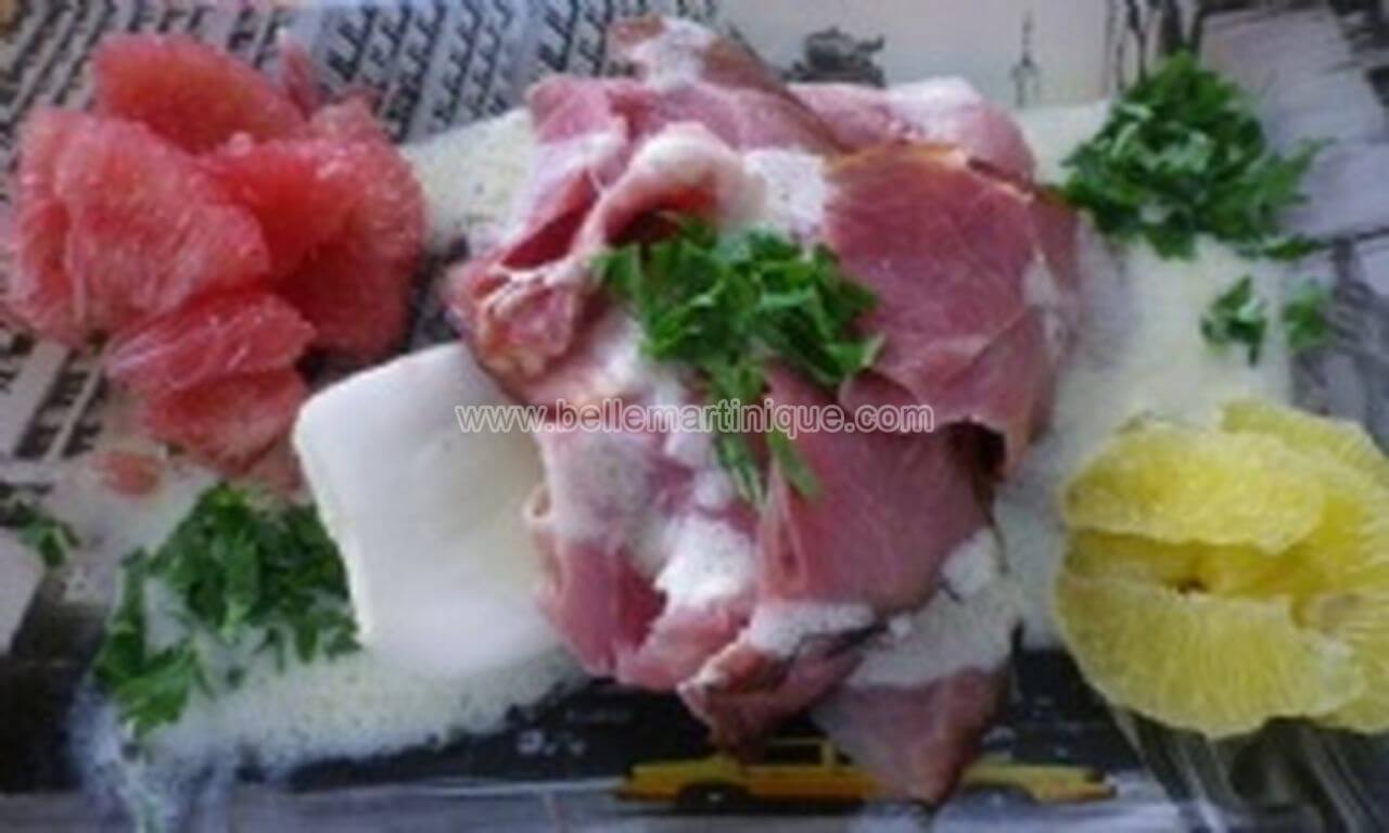 Sur les assiettes, déposer le jambon en chiffonnade.