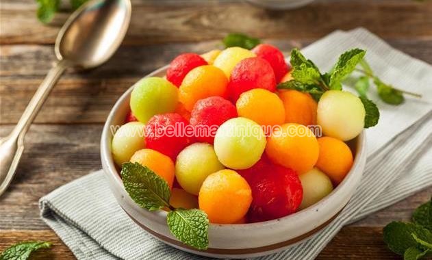 Ensuite, épépiner le melon et le morceau de pastèque, puis, à l’aide d’une cuillère parisienne, formez des boules de melon et pastèque jusqu’à épuisement des ingrédients.