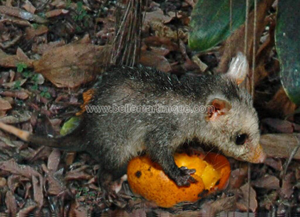 Cette espèce se rencontre dans les Antilles et entre autre en Martinique. Il vit dans les forêts primaires et secondaires et les savanes mais aussi sur les terres agricoles. De temps en temps, certains égarés se retrouvent dans les villes. Il mange aussi bien des fruits, il raffole des mangues, que des vers, des grenouilles, des insectes et parfois aussi des oiseaux et des œufs. Lorsqu’il se sent en danger, il émet une odeur désagréable et si le danger se rapproche, il fait le mort pour déstabiliser l’adversaire. La femelle peut mettre au monde jusqu’à 3 fois par an, 5 à 9 petits, qu’elle porte dans sa poche ventrale pendant 60 à 70 jours. À la fin de cette période, ils pèsent 50 grammes. Ils passeront encore 8 à 12 jours dans un nid rudimentaire de feuillage. Après quoi, pesant entre 80 et 120 grammes, les petits quittent leur mère. Un manikou peut vivre jusqu’à deux ans et demi, en milieu naturel. Le mâle vit seul. Le manikou a été longtemps chassé, cependant dans les Antilles, depuis le 17 février 1989, le manikou est un animal protégé par la loi française.