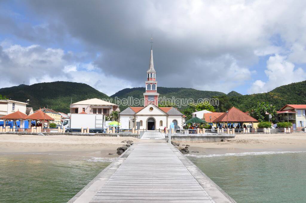 S’il y a une image qui permet de reconnaître la commune des Anses- d’Arlet entre autres, c’est bien celle de son église. Dans le prolongement exact du ponton. Que l’on soit sur terre ou en mer, on reconnaitrait entre mille ce paysage de carte postale. Notamment, le clocher des Anses d’Arlet.