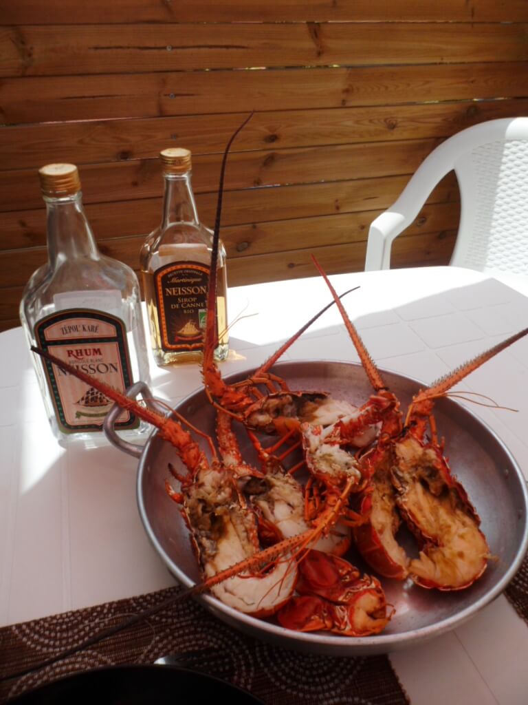 Préparation de plats cuisinés à base de la pêche du jour car je suis pêcheur, la langouste fraîchement pêcher.