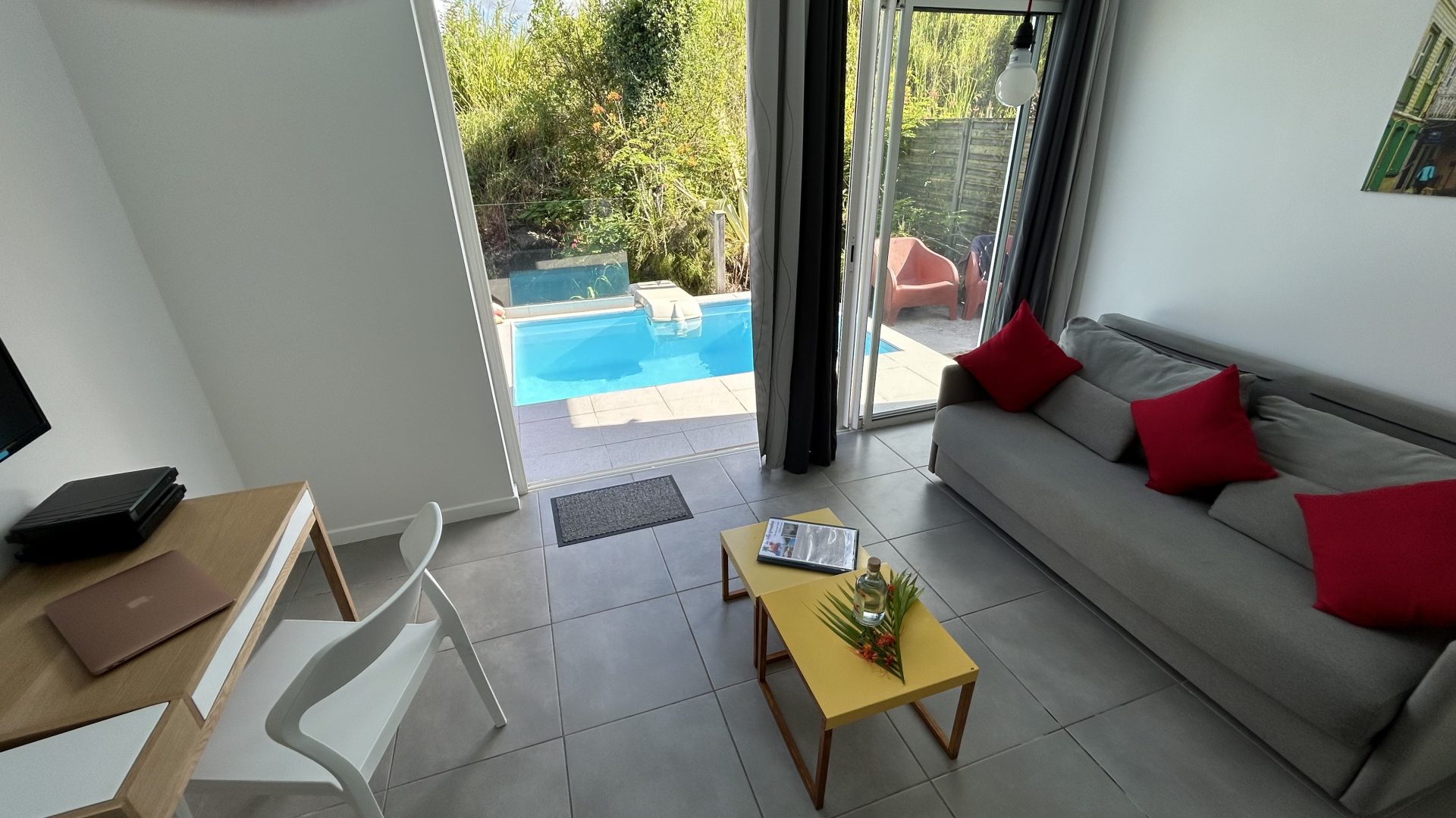 La villa Grenadine est située sur les hauteurs du bourg des Trois llets, d’un côté les champs de canne, de l’autre la vue mer. Vous respirez la Martinique ! Vous êtes idéalement situés pour visiter au mieux l’ile aux fleurs, à 20 min de l’aéroport, 5 min du golf et autant des premières plages. Cette construction récente offre une belle terrasse avec un « Bac à Punch » privé pour vos cocktails de fin de journée. Un lit bébé, chaise haute sont à votre disposition.