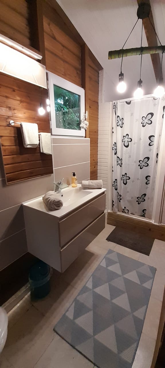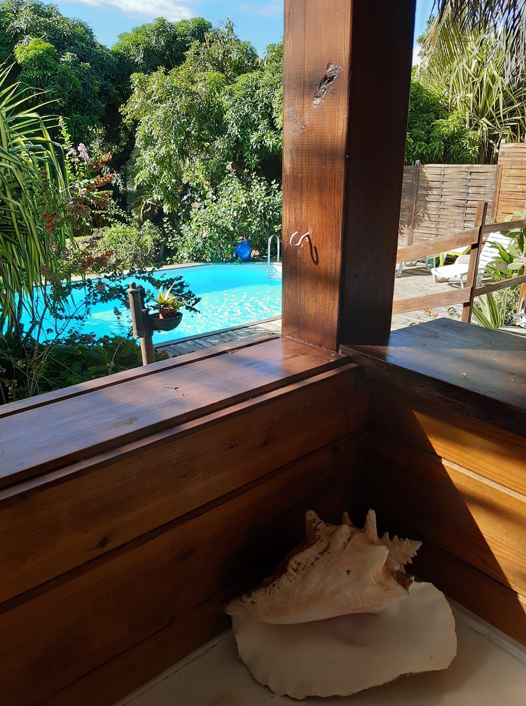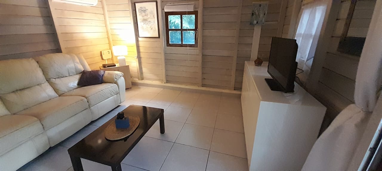 Niché dans un parc privé planté d’arbres fruitiers à 15 mn de l’aéroport. Le chalet tropical de 60m2 se situe face à sa piscine au sel avec son espace détente.