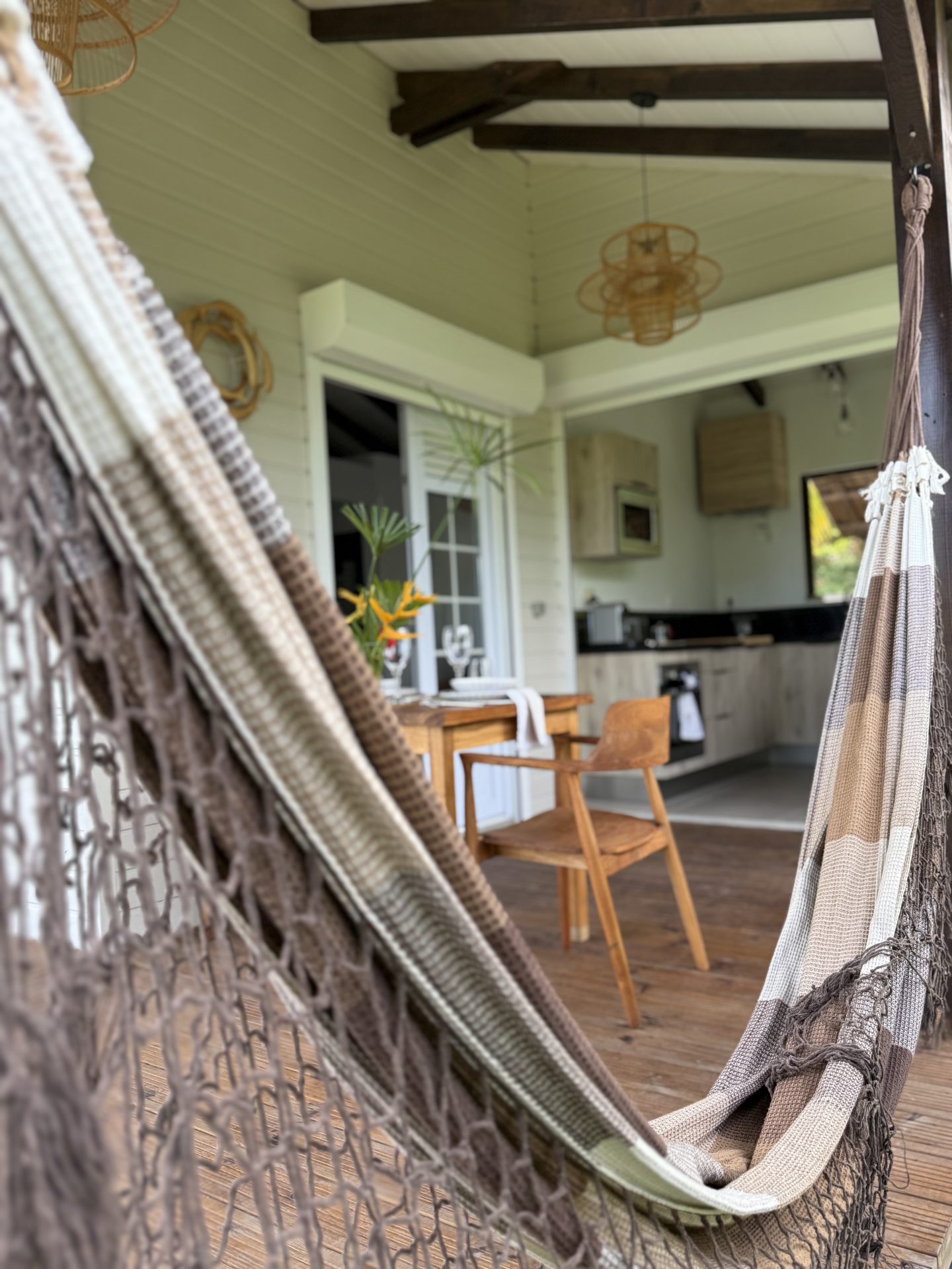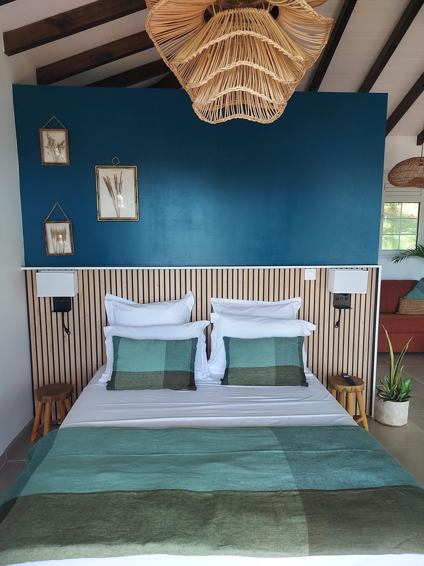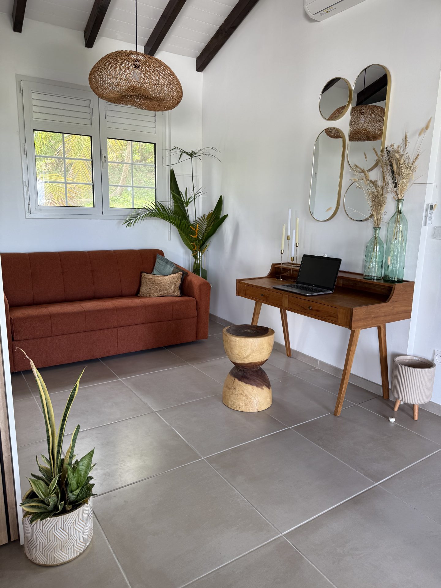 Niché dans un écrin de verdure surplombant l’atlantique sur la commune du Vauclin au Sud de la Martinique, notre lodge saura ravir nos visiteurs en quête de confort, d’authenticité et de sérénité. Ce lodge de charme au confort qualitatif se compose d’une suite Prémium de 27m², d’une belle cuisine équipée de 7m², d’une grande terrasse de 19m² donnant sur le ‘Ti Lagon » la piscine ronde et sa vue sur la mer. Vous pourrez profiter (avec supplément) de l’espace de Bien-Être (jacuzzi, sauna infrarouge, Hammam) dans un espace reposant et verdoyant. Vous pourrez également prendre le temps d’un massage et demander votre soin personnalisé.