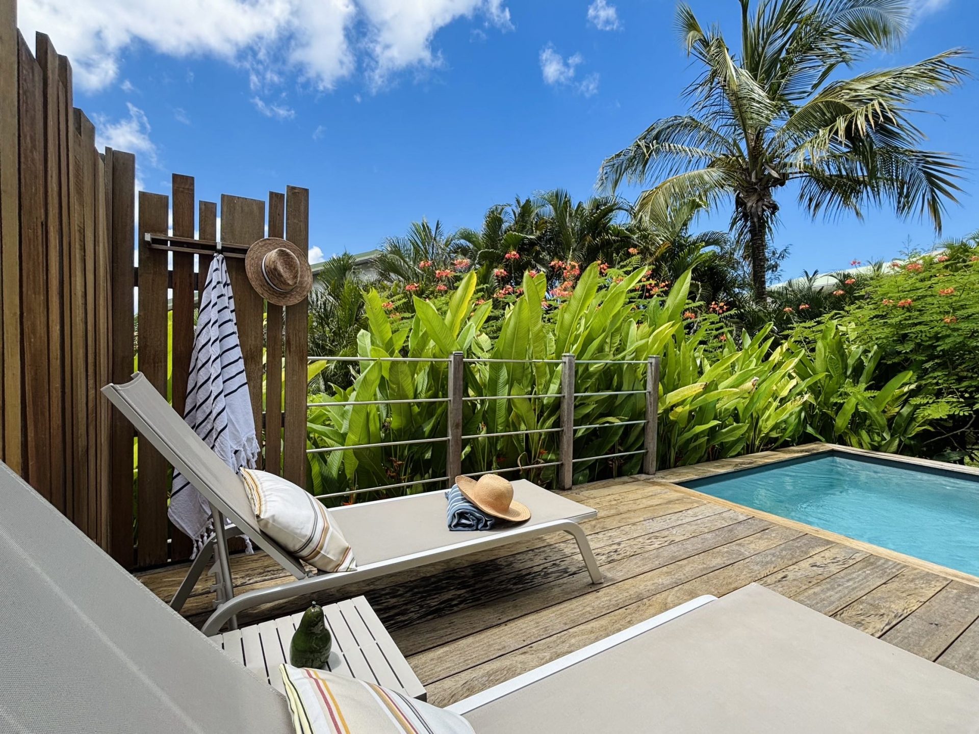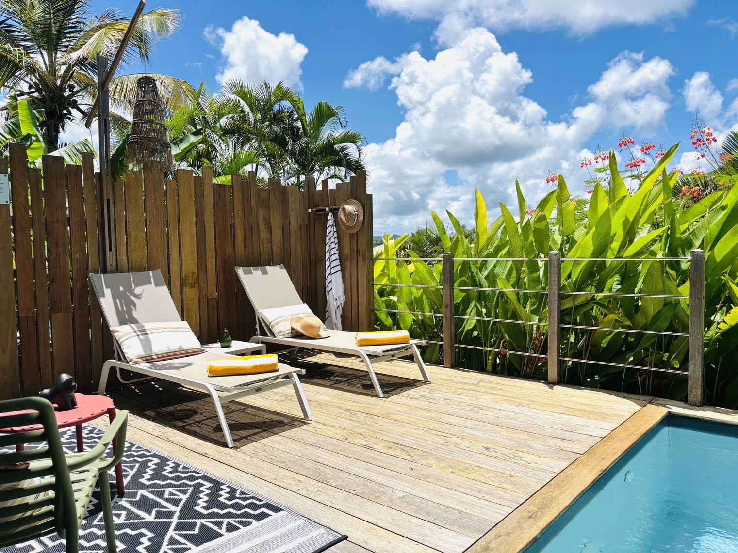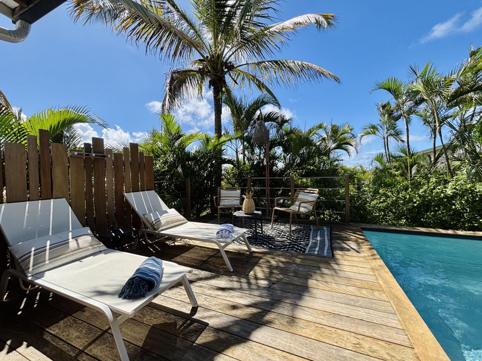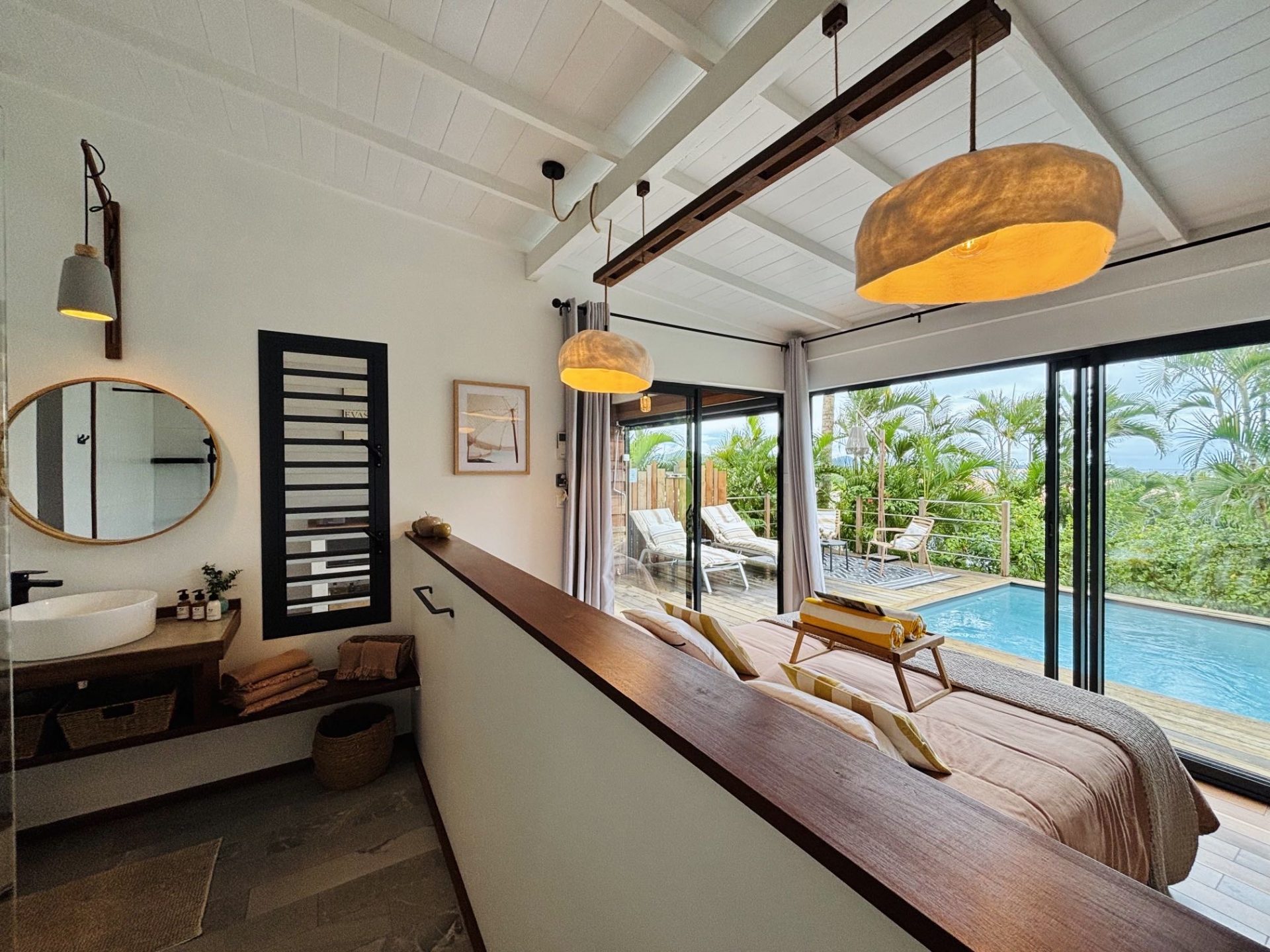 5 lodges nichés au cœur d’un parc luxuriant, combinant l’exotisme du charme créole avec un design contemporain. Chaque bungalow, totalement indépendant, offre des prestations haut de gamme avec sa piscine privée et son design épuré. L’intimité est totale et la vue mer dans certains lodges ajoute une touche d’évasion. L’accueil, à la fois chaleureux et attentionné, donne le ton de séjours d’exception, enrichis par des services personnalisés pensés pour le confort et le bien-être.