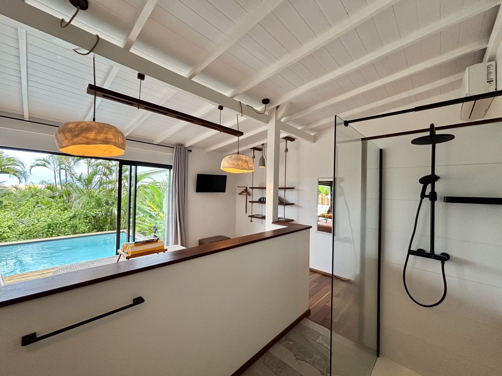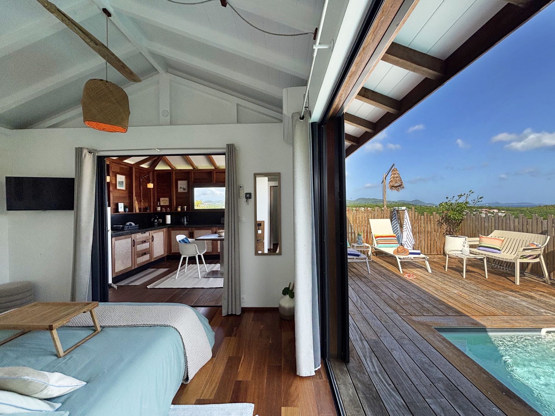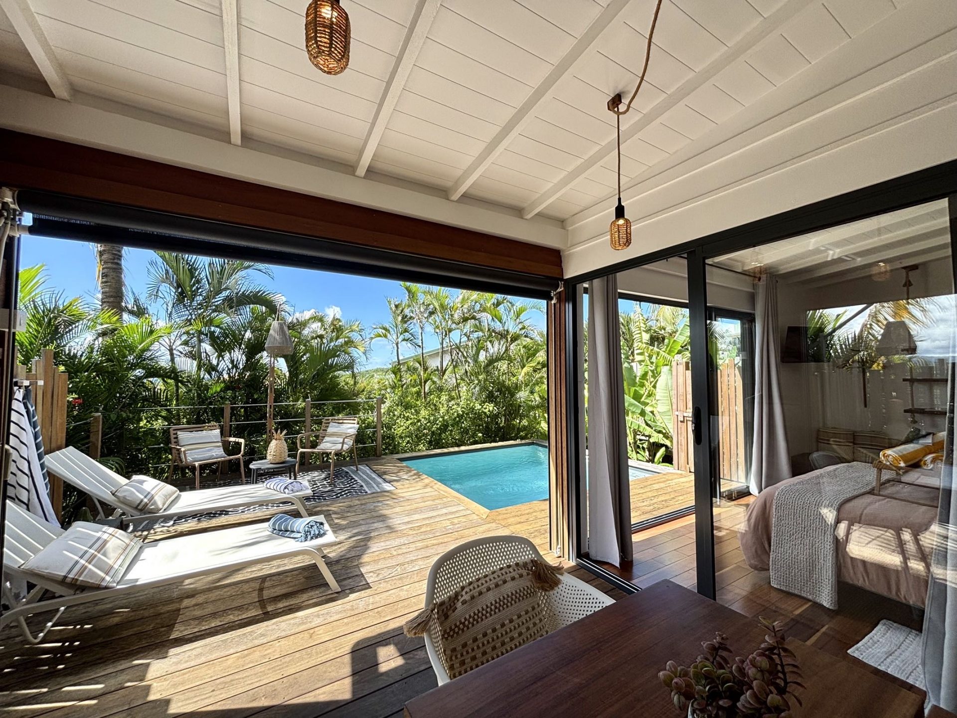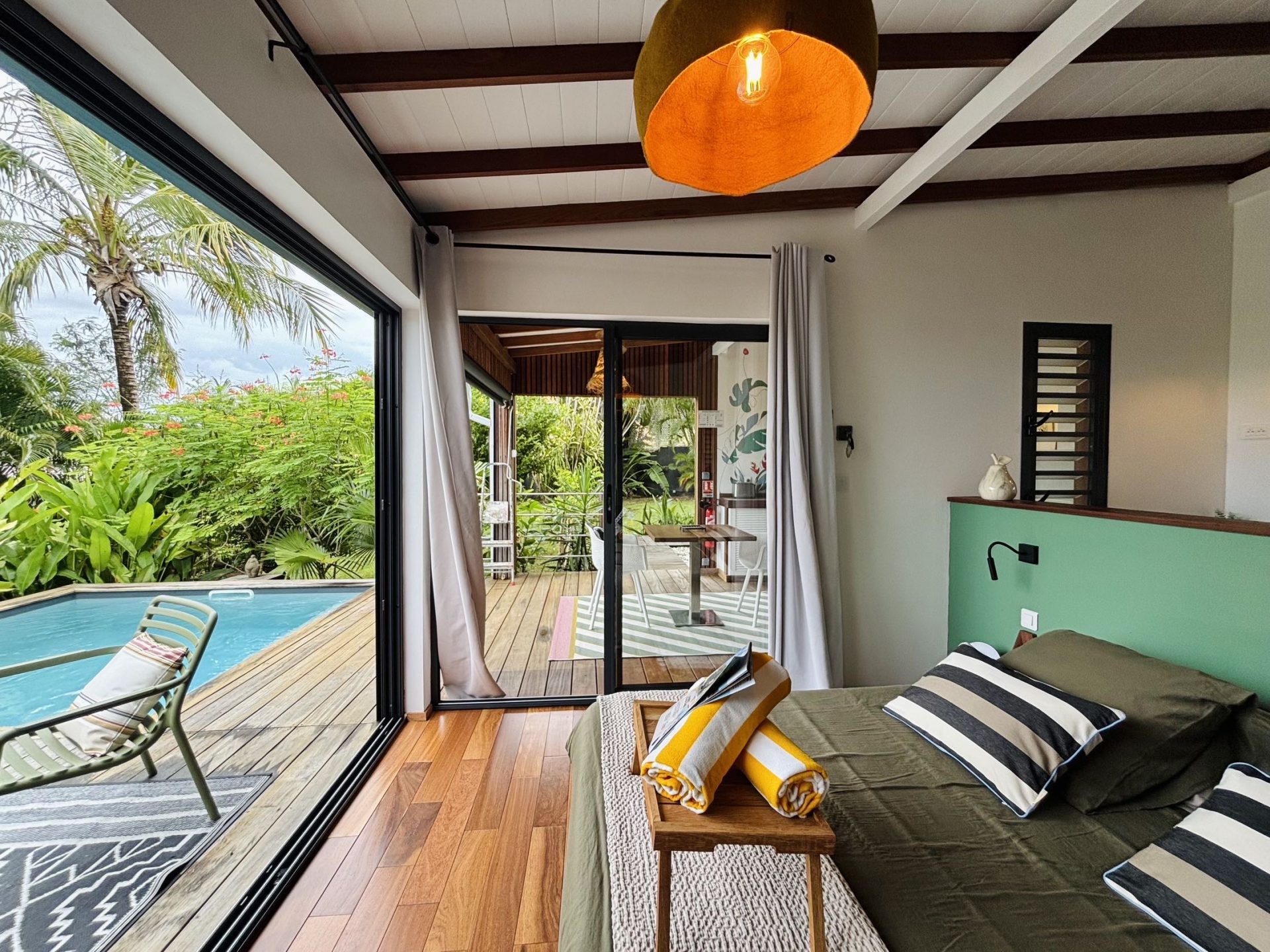 5 lodges nichés au cœur d’un parc luxuriant, combinant l’exotisme du charme créole avec un design contemporain. Chaque bungalow, totalement indépendant, offre des prestations haut de gamme avec sa piscine privée et son design épuré. L’intimité est totale et la vue mer dans certains lodges ajoute une touche d’évasion. L’accueil, à la fois chaleureux et attentionné, donne le ton de séjours d’exception, enrichis par des services personnalisés pensés pour le confort et le bien-être.