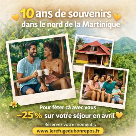 Déjà 10 ans que nous vous accueillons au cœur du nord de la Martinique, dans un cadre paisible, entouré de nature, avec la Montagne Pelée en toile de fond 🌿🌋