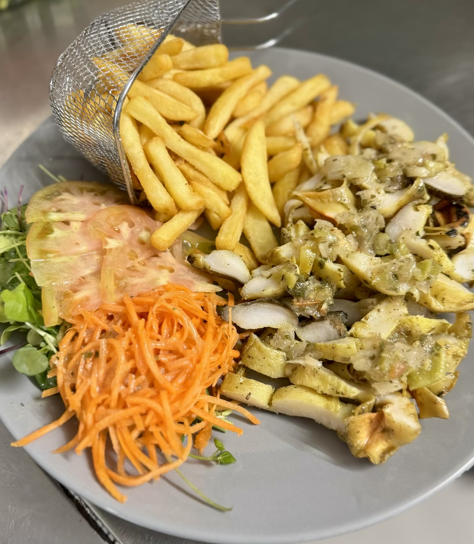 Parmi eux, le célèbre colombo de poulet, parfumé aux épices antillaises. Vous pourrez aussi savourer une fricassée de lambis ou de chatrou, préparée selon les recettes traditionnelles.